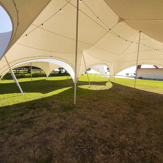 The 11.5x8.5 Capri marquee, is our largest marquee with a size of 11.5 meters by 8.5 meters. Its unique and one of a kind design that is the perfect starting point in creating your special event. It is ideal for large party's, 21st and small weddings. It can seat up to 64 people, with our 1.6 meter round tables and 1.8 meter long tables or stand up to 80 people with an indoor - outdoor flow. It also has the option to have walls on it. The Capri marquee is installed by our professional Chill Out team and can go on grass or concrete.