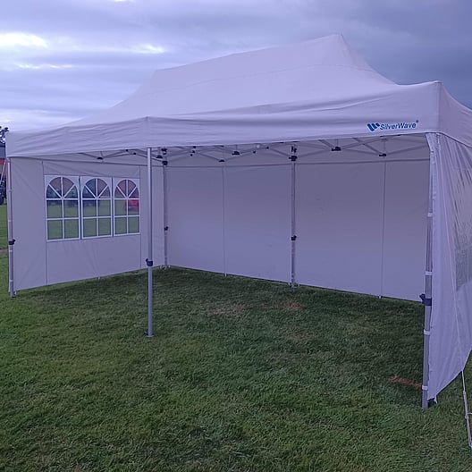 The 3x6 pop up tent, has a size of 3 by 6 meters. This tent is ideal for back yard party's, shows, bar set up's and sporting events. It has the option to have walls on it. This tents is very easy to put up and can be self erected or installed by our professional Chill Out team.