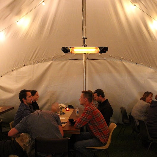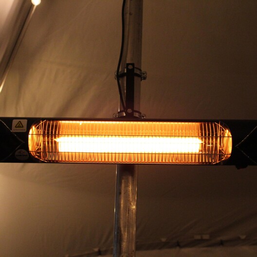 Our electric infrared radiant pole heaters, connect to the center poles of the marquees, taking the edge off those cooler nights.